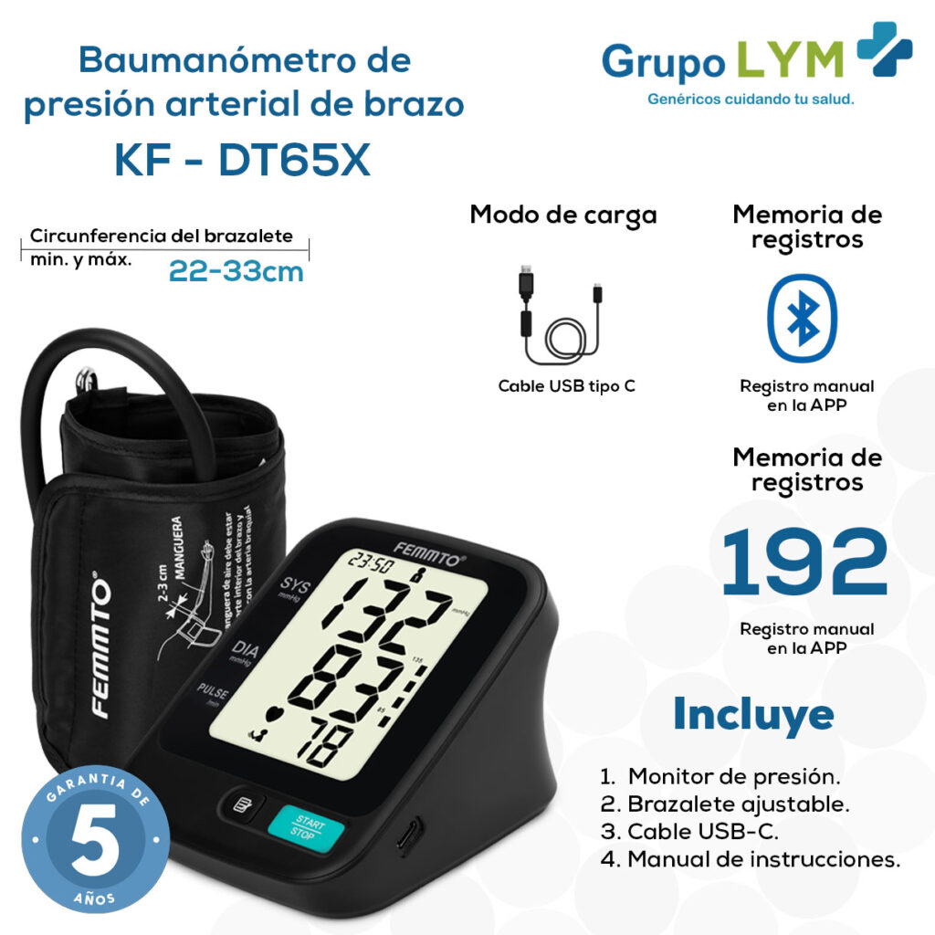 MONITOR DE PRESIÓN ARTERIAL DE BRAZO Bluetooth USB BAUMANÓMETRO KF-DT65X FEMMTO
