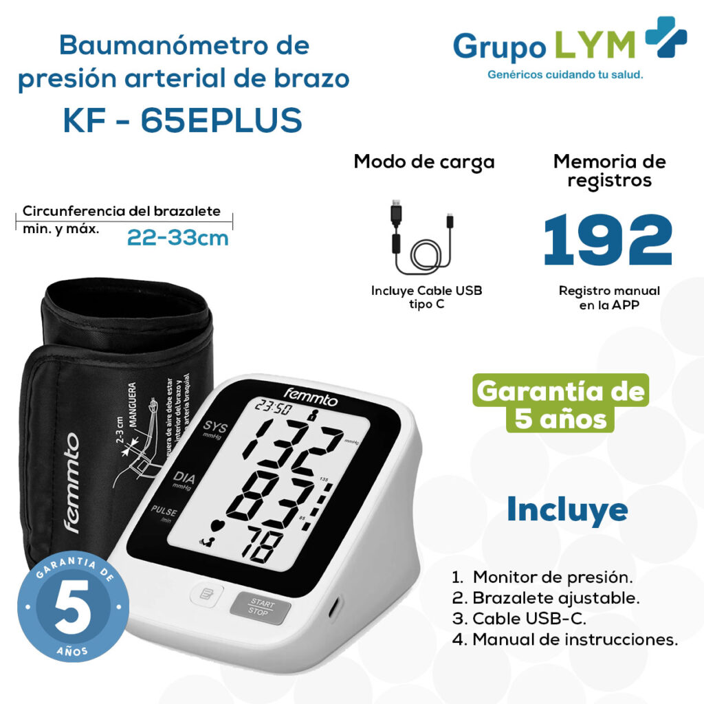 MONITOR DE PRESIÓN ARTERIAL DE BRAZO DIGITAL USB BAUMANÓMETRO KF-65EPLUS FEMMTO
