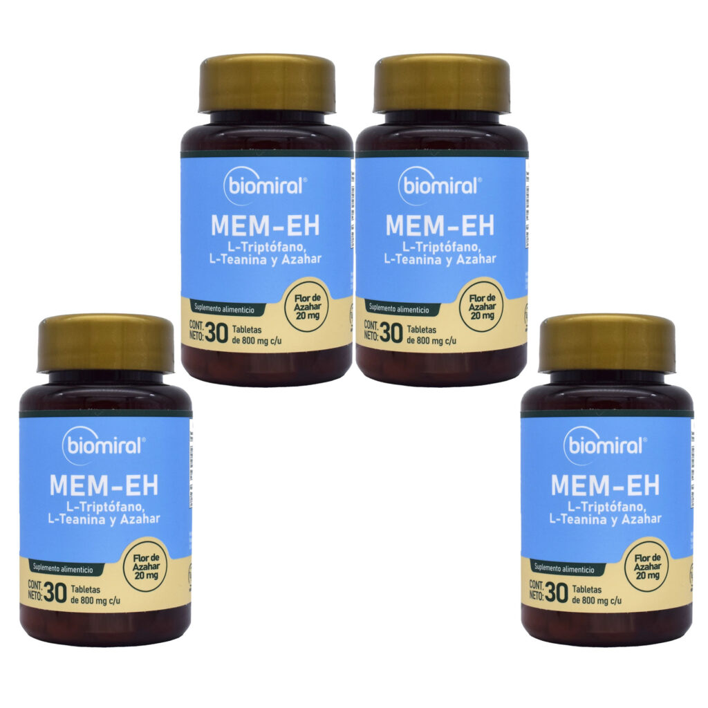 EN ESTE PRODUCTO NO HAY CAMBIOS NI DEVOLUCIONES. Mem-eh de Biomiral diseñado para aquellos que buscan mejorar la calidad de su sueño y controlar el insomnio. Cada tableta contiene una combinación equilibrada de Azahar, L-triptófano y L-Teanina, ingredientes conocidos por sus propiedades relajantes y su capacidad para promover un estado de calma y bienestar. El Azahar, con su aroma suave y propiedades sedantes, ayuda a reducir la ansiedad y a preparar el cuerpo para un descanso reparador. El L-triptófano, un aminoácido esencial, es fundamental para la producción de serotonina, lo que contribuye a regular el sueño y mejorar el estado de ánimo. Por su parte, la L-Teanina potencia la relajación sin causar somnolencia, permitiendo que el cuerpo se relaje de manera natural. Este producto es ideal para adultos mayores de 18 años que buscan una solución natural para combatir el insomnio y mejorar su bienestar general. Presentado en un práctico frasco, Mem-eh es fácil de incorporar a tu rutina diaria, ayudándote a alcanzar un sueño reparador y a despertar renovado cada mañana.
