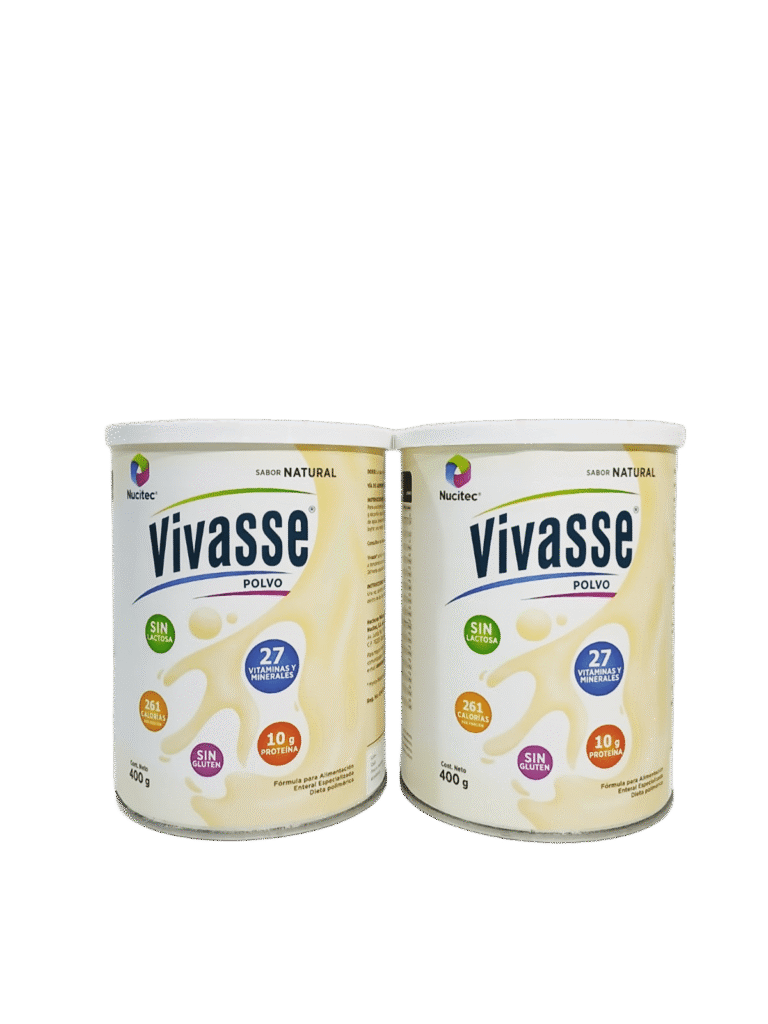 Fórmula para alimentación enteral especializada sabor natural en polvo. Con 27 vitaminas y minerales, 261 calorías, 10 g. proteína, sin lactosa y sin gluten. 2 SOBRES / LATAS de 400g. c/u. Reg. No. 014F2018
