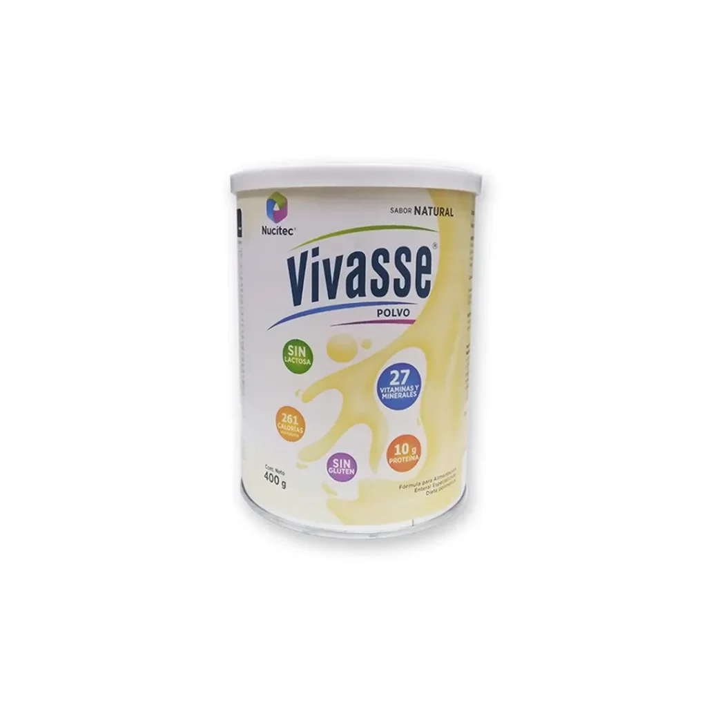 Fórmula para alimentación enteral especializada sabor natural en polvo. Con 27 vitaminas y minerales, 261 calorías, 10 g. proteína, sin lactosa y sin gluten. 1 SOBRES / LATAS de 400g. c/u. Reg. No. 014F2018